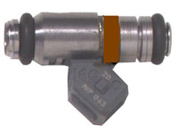 Fast idle adjustment The two blue lines show the ends of the fast idle lever slot, and you can see the pin that stops the lever next to the upper line. This means the ends of the cable travel are constrained, and this needs to be remembered when you adjust the cable. There’s no point adjusting the cable so the lever doesn’t move, as the adjustment for when the fast idle lever starts opening the throttle bodies themselves is controlled by 12, the fast idle adjustment screw. Adjust the cable so it works fully between the two limits and then adjust the actual throttle opening to where you like it via the fast idle adjustment screw. Doing this makes it very easy to give clearance in the system. Pico Injectors Below is a photo of the Pico series injector, just so you know what it looks like. The brown band denotes this one as an IWP043. The 748R, 998, 999, etc fitment IWP069 has a yellow band, the MV fitment IWP048 a red band for example.