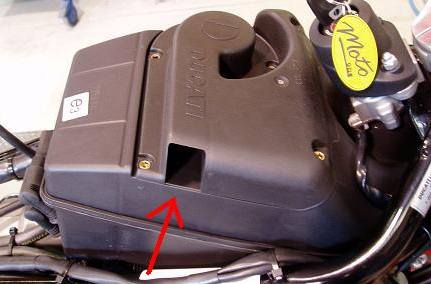 If you’ve had a look at the air filter setup on a Sport Classic you’ll know how restrictive the inlet is and that the filter itself isn’t much better. If you haven’t, see the photo below. That little square opening arrowed is the air inlet!